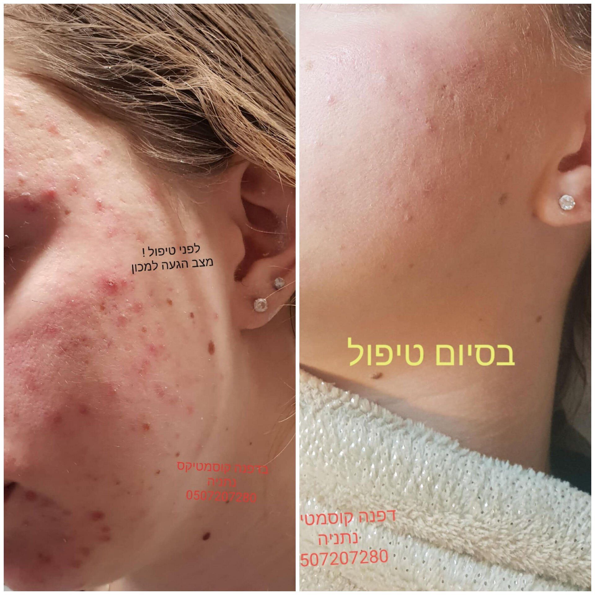 מתן תכשירים קוסמטיים לשימוש ביתי להרגעת הדלקת מה שמאפשר התחלת סדרת טיפולי פנים לניקוי יסודי וניקוז עד להחלמה מלאה.